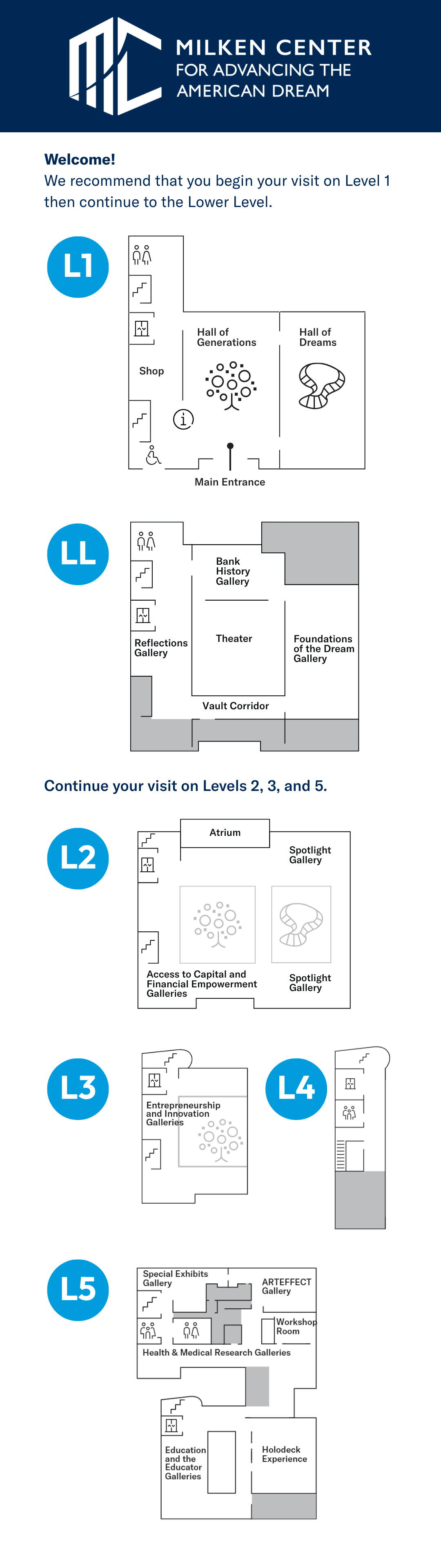 The Milken Center for the American Dream does not have any storage facilities for visitor belongings. Please travel light as you’ll need to hang onto your belongings throughout your visit.